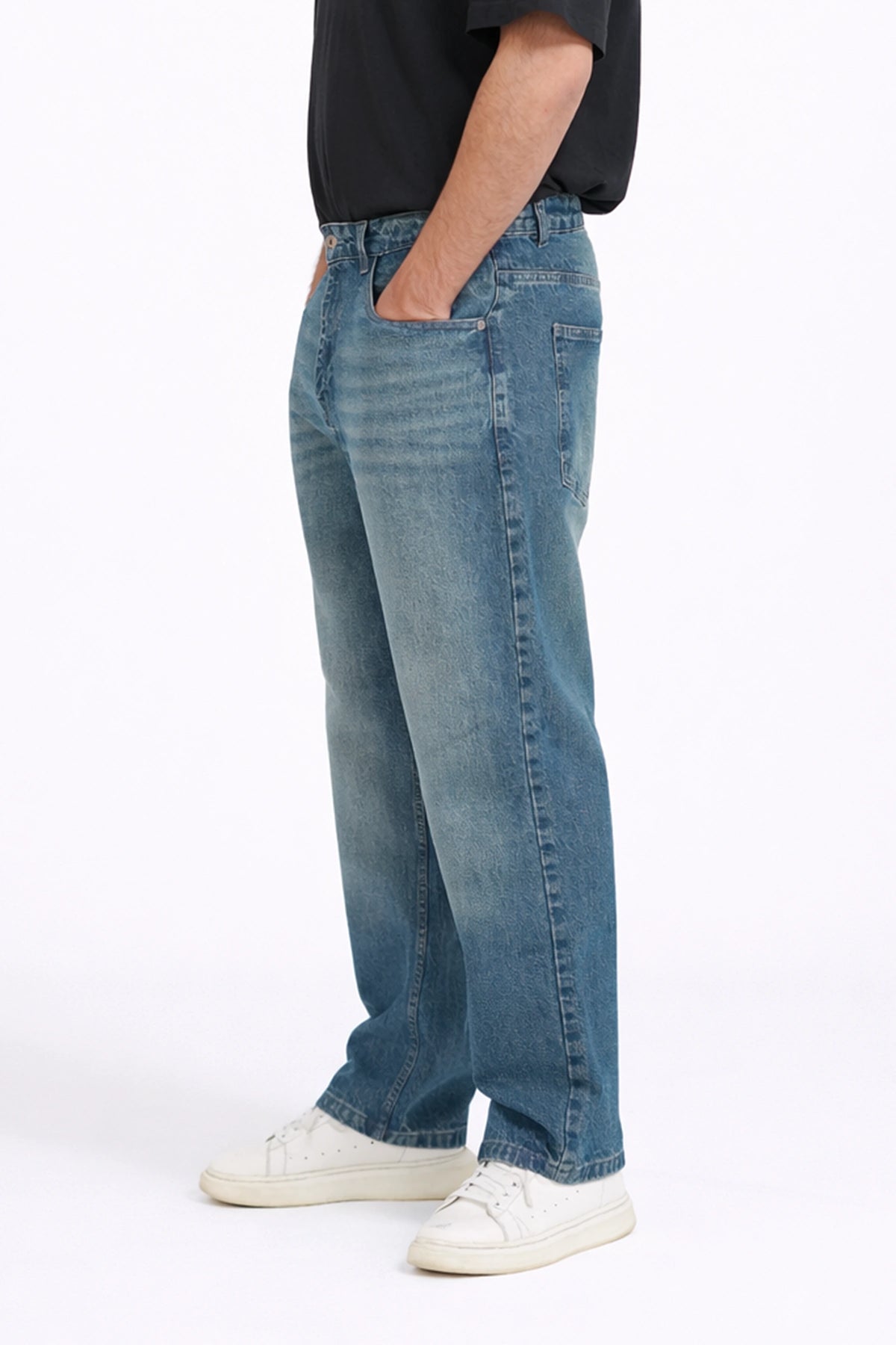 Design Details: Classic baggy jeans with a basic five-pocket construction
