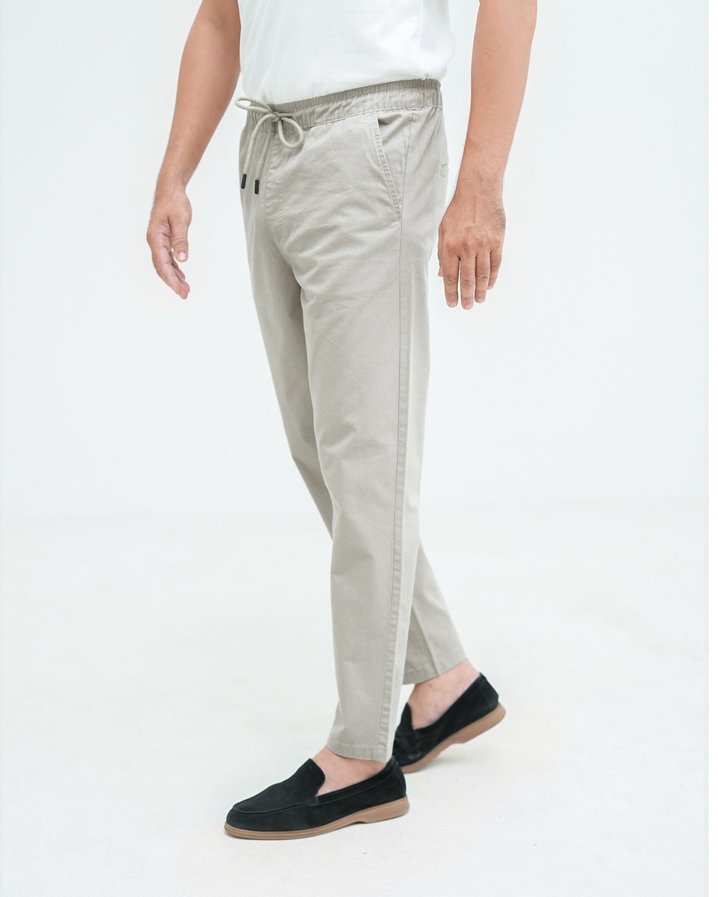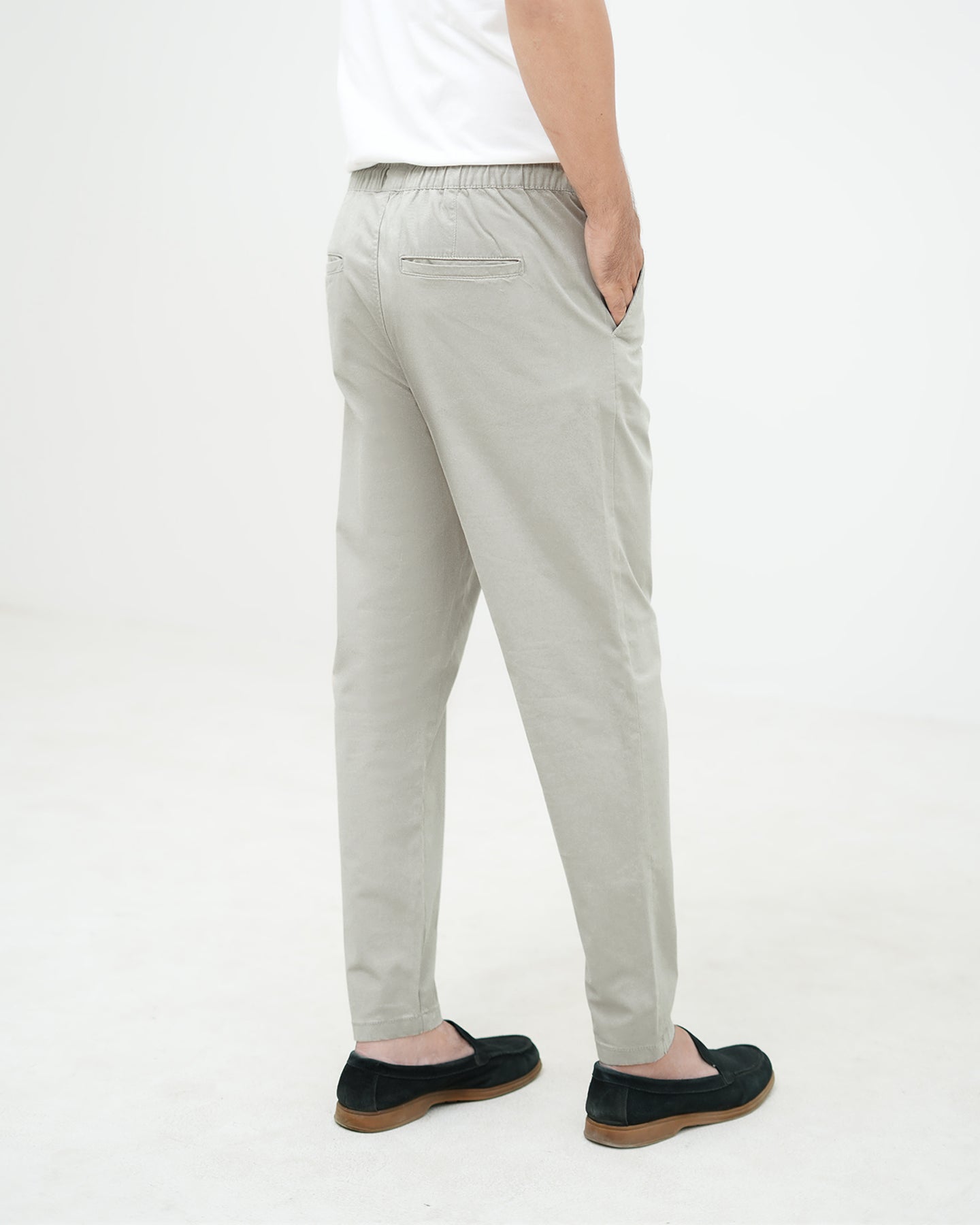 Design Details: These crisp stone joggers offer a clean, minimal look with a relaxed silhouette. Designed with an elasticated waistband and drawstring for a custom fit, they feature practical side pockets and a tapered leg that subtly narrows at the ankle for a modern edge.